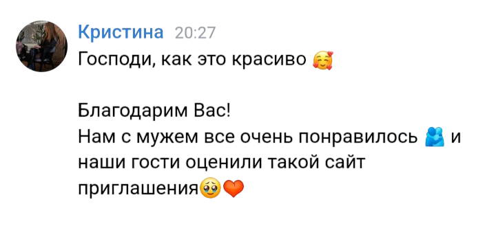 После одобрения и внесения оплаты, мы предоставляем готовый вариант, который вы сможете отправлять гостям.